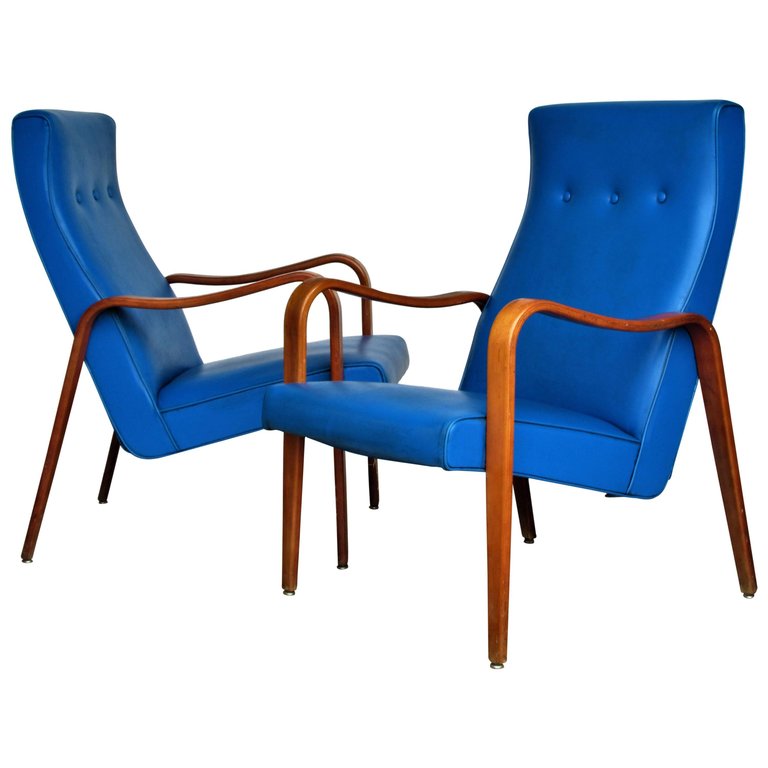 Milo Baughman Orange Parson Lounge Chairs