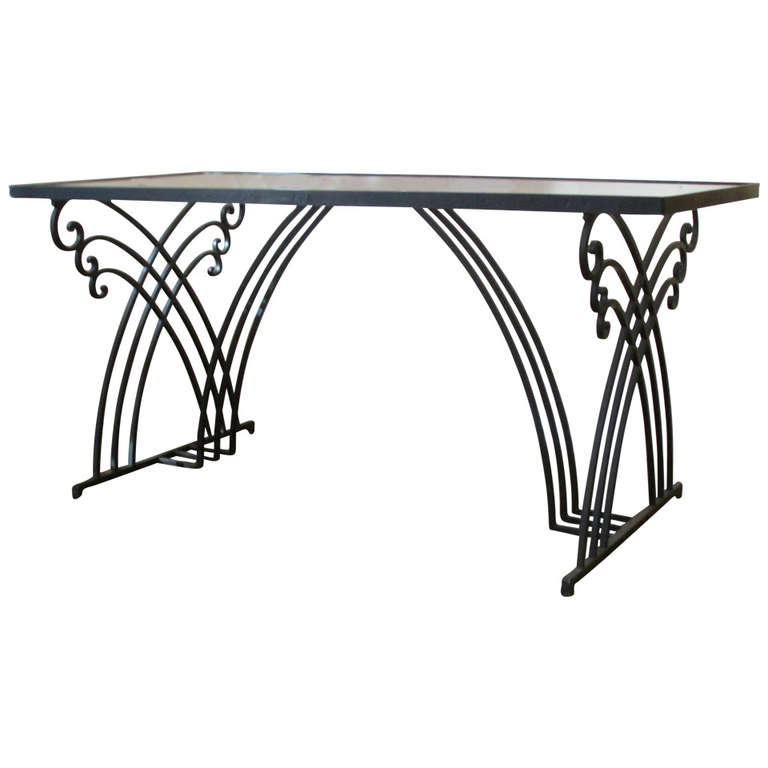 Iron Mesh Winged Table with Marble Top